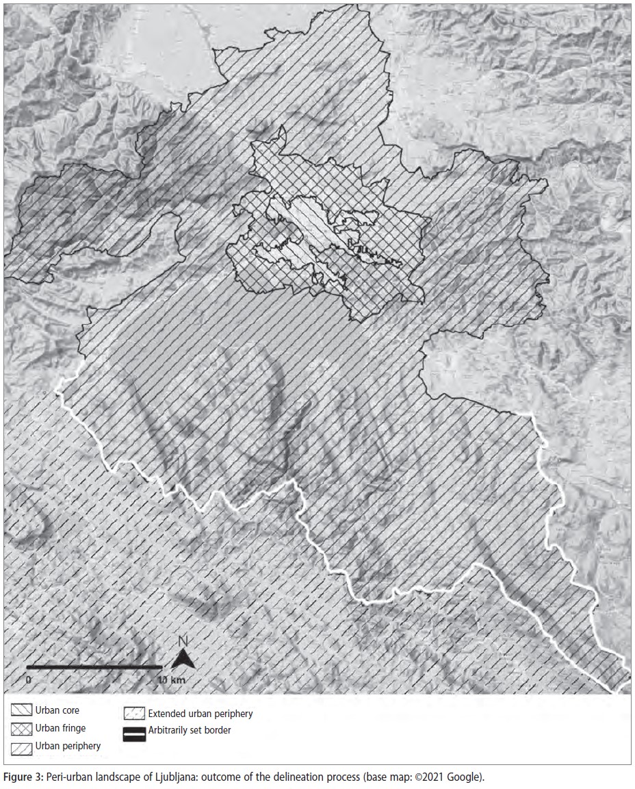 The ill-defined space between urban and rural areas is typically referred to as peri-urban landscape. One key reason for this lack of clarity is the unduly broad scale of conceptual and geographical resolution. This article focuses on its spatial elucidation at a sub-regional scale. It describes a method for delineating peri-urban landscape, based on spatial and demographic criteria. Arguably, spatially explicitly denoted peri-urban landscape on a sub-regional level would help in choosing appropriate local and region al planning approaches and policies for its development. The method, based on an overlay analysis, was tested using datasets from regional and municipal authorities in Ljubljana and Edinburgh. The results indicate that this less ambiguous spatial definition of peri-urban landscape offers a sound basis for planning and policy development.