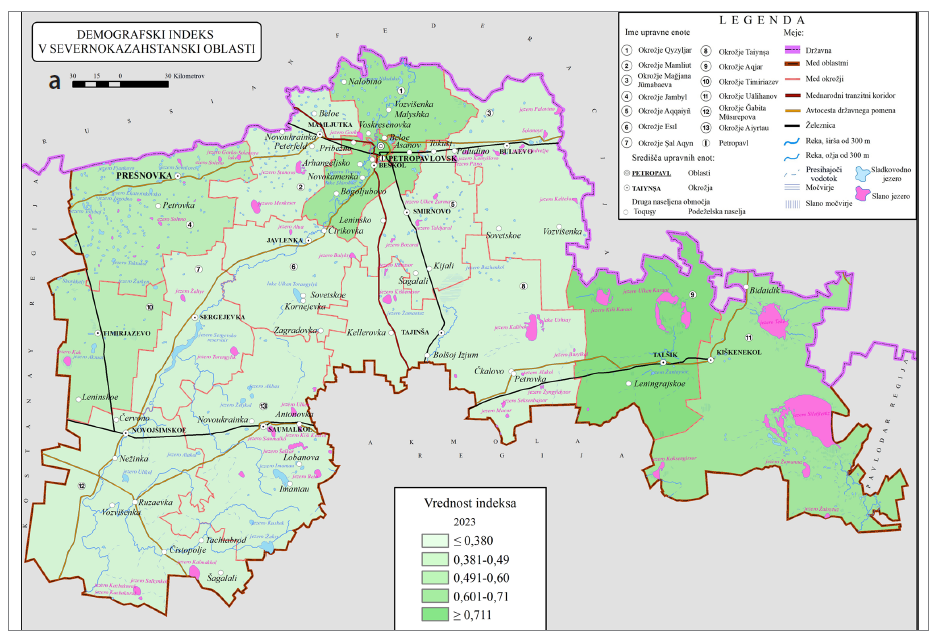 družbena trajnost, demografska struktura, prostorske razlike, Severnokazahstanska oblast, GIS, trajnostni indeks, cilji trajnostnega razvoja