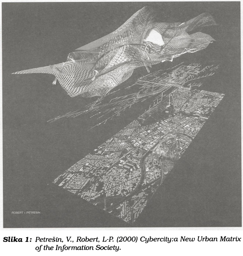 Članek primerja napovedi in ugibanja o razvoju mest in kulture bivanja ob začetku informacijske revolucije z dejanskimi trendi. Posledice informacijska revolucija se danes že zrcalijo v fenomenih družbe in okolja, spremembah v kulturi in estetiki ter nenazadnje ostankih pretekle industrijske dobe, ki postajajo spomeniki prihodnosti. Zanimivost mestnih četrti za potencialne prebivalce je povezana s pojavom aglomeracije osrednjih dejavnosti, vezanih na globalno ekonomijo. Ta je vzporedna preobrazbi proizvodnih procesov, spremenjenemu ritmu delovnika, novim oblikam zaposlitve ter novemu življenjskemu slogu. Veliko je povpraševanje po fleksibilnih stavbnih tipih, začasni dostopnosti novih medijev in nanje vezanih storitev. S povečano virtualno zmogljivostjo mesta rastejo tudi elektronske četrti. Mesto s svojim sobivanjem grajenega in digitalnega postaja hibrid, kar pa ponuja arhitekturi in urbanizmu nove izzive.