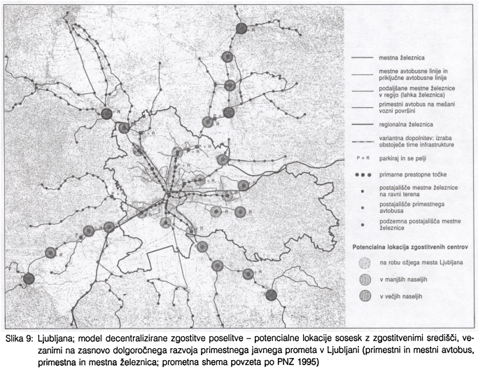 Usmerjanje urbanega razvoja mesta zahteva celosten pristop v širšem, regionalnem smislu. Trajnostno usmerjeni model regionalnega mesta vključuje razvoj osrednjega strnjenega mesta in decentralizirano zgoščevanje na suburbaniziranih območjih. Eno osnovnih načel modela decentralizirane koncentracije je povezovanje regionalnih struktur urbane rasti z razvojem javnega prometa. Pozidava je koncentrirana na strateških točkah vzdolž javnega regionalnega transportnega sistema. S tem nastajajo manjša središča (z višjo gostoto) ob poteh javnega prevoza, ki združujejo različne urbane funkcije: delo, bivanje, nakupovanje in rekreacijo.