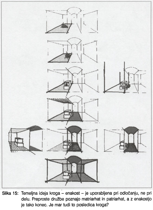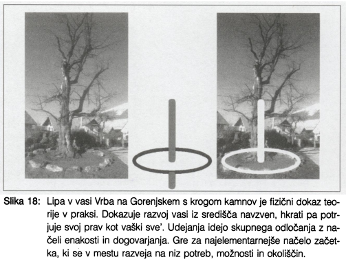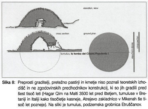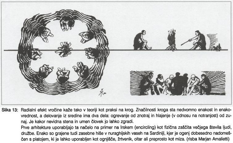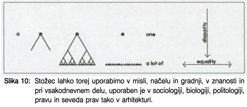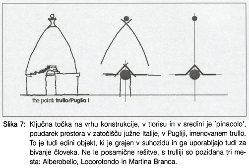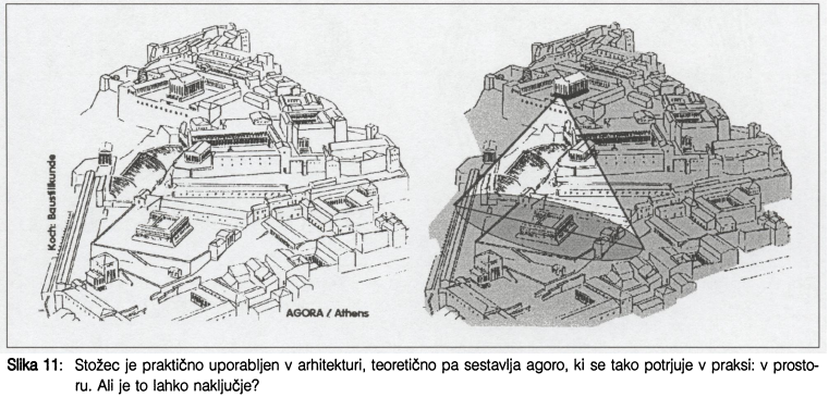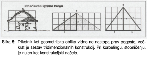 V prispevku so predstavljena razmišljanja o povezanosti arhitekturne oblike v teoriji in praksi oziroma o izjemni povezanosti pogledov različnih strok z arhitekturnim izrazom. Skupni prostori mesta, mesta sama in posamezne arhitekture so v svoji organizaciji sestavljene od spodaj navzgor ali množenja elementov od zgoraj navzdol. Teoretično ozadje razmišljanj je predstavljeno prek teorij središča, jedra in trikotnika ter stožca. Teorijo potrjujejo primeri iz vernakularne arhitekture.
