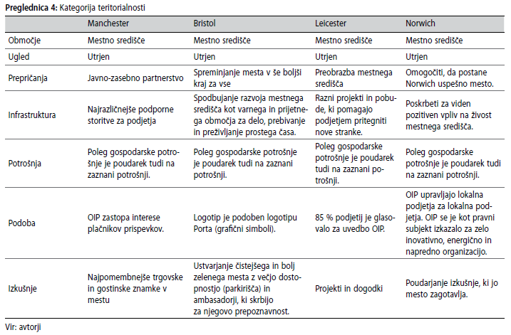 ter lokalni, regionalni in mednarodni ugled mesta. Raziskava je pokazala, da območja izboljšanega poslovanja
