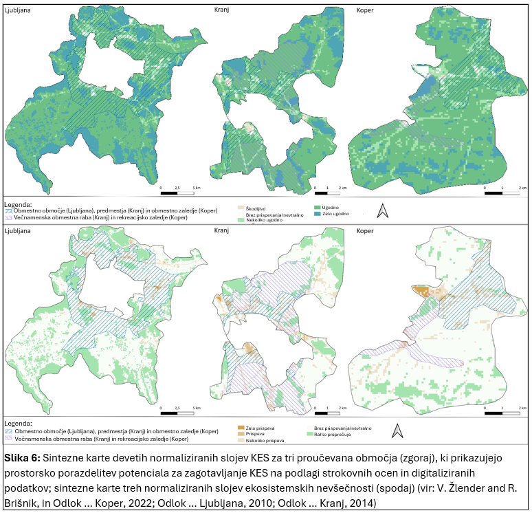 za obmestne krajine, in to glede na kategorije KES. Poleg potenciala za zagotavljanje kulturnih ekosistemskih